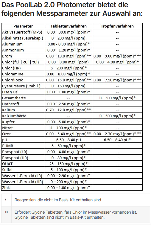 Dieses Gerät misst gleichzeitig drei Wasserparameter und ermöglicht die zuverlässige Bestimmung von 24 verschiedenen Wasserwerten.Es ist wasserfest nach Schutzklasse IP68 und verbindet sich per WiFi oder Bluetooth. Die kostenlose App sorgt für eine komfortable und einfache Wasseranalyse.